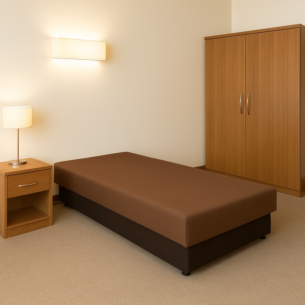 Nowoczesne, wygodne i praktyczne łóżko idealne do każdego wnętrza — od pokoju młodzieżowego po sypialnię gościnną. Wykonane z solidnej drewnianej ramy i osadzone na drewnianych nogach, gwarantuje stabilność oraz trwałość na długie lata.
